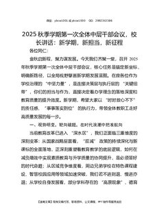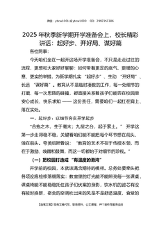 2025年秋季新学期开学准备会上,校长精彩讲话:起好步、开好局、谋好篇