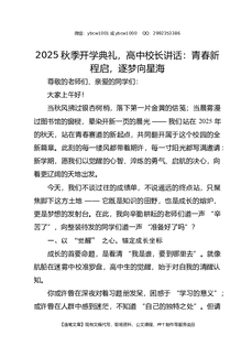 2025秋季开学典礼,高中校长讲话:青春新程启,逐梦向星海