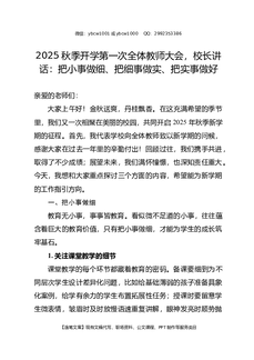 2025秋季开学第一次全体教师大会,校长讲话:把小事做细、把细事做实、把实事做好