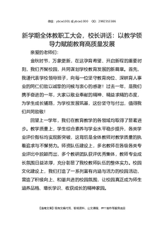 新学期全体教职工大会,校长讲话:以教学领导力赋能教育高质量发展