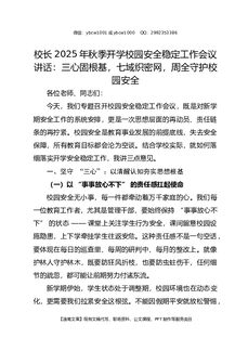 校长2025年秋季开学校园安全稳定工作会议讲话:三心固根基,七域织密网,周全守护校园安全