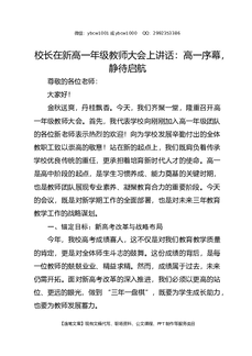 校长在新高一年级教师大会上讲话:高一序幕,静待启航