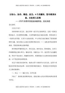 2025秋季开学前全体教师会,校长讲话:以初心、协作、精进、担当,4个关键词,坚守教育本真,共赴育人征程.docx
