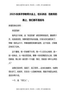 2025秋季开学教师大会上,校长讲话:在教育的路上,我们都不是孤岛.docx