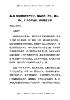 2025秋季开学教师大会上,校长讲话:收心,静心,用心,以三心育桃李,启新程谱华章.docx