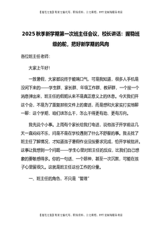 2025秋季新学期第一次班主任会议,校长讲话:握稳班级的舵,把好新学期的风向.docx