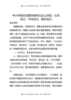 中小学校长在期末教师大会上讲话:认识自己,守住自己,稳住自己.docx