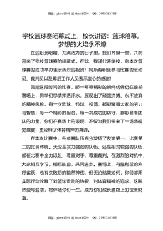 学校篮球赛闭幕式上,校长讲话:篮球落幕,梦想的火焰永不熄.docx