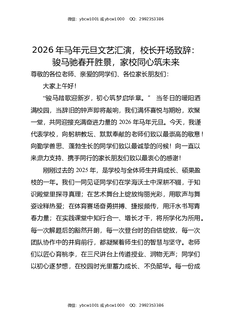 2026年马年元旦文艺汇演,校长开场致辞:骏马驰春开胜景,家校同心筑未来.docx