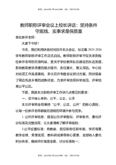 教师职称评审会议上校长讲话:坚持条件守底线,实事求是保质量.doc