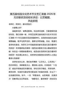 第五届校园文化艺术节文艺汇演暨2026年元旦联欢活动校长讲话:以艺赋能,共赴新程.doc
