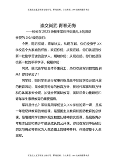 校长在2025级新生军训开训典礼上的讲话:崇文尚武,青春无悔.docx
