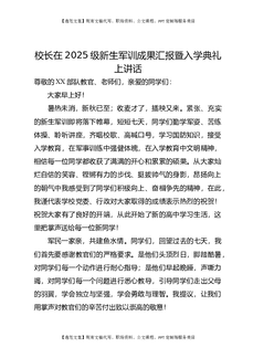校长在2025级新生军训成果汇报暨入学典礼上讲话.docx