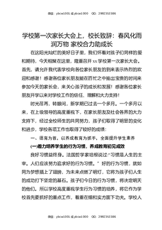 学校第一次家长大会上,校长致辞:春风化雨润万物,家校合力助成长.docx