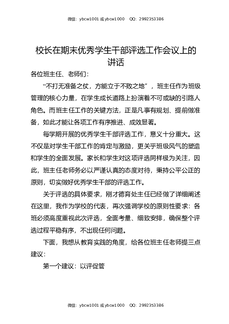校长在期末优秀学生干部评选工作会议上的讲话.docx