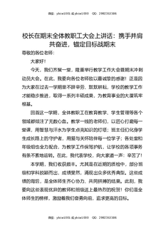 校长在期末全体教职工大会上讲话:携手并肩共奋进,锚定目标战期末.docx