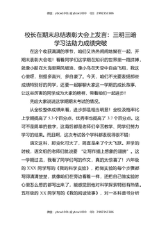 校长在期末总结表彰大会上发言:三明三暗学习法助力成绩突破.docx
