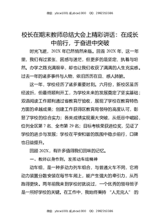 校长在期末教师总结大会上精彩讲话:在成长中前行,于奋进中突破.docx