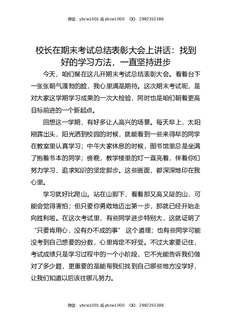 校长在期末考试总结表彰大会上讲话:找到好的学习方法,一直坚持进步.docx