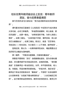 校长在青年教师座谈会上发言:青年教师朋友,奋斗的青春最美丽.docx