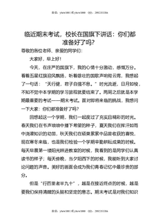 临近期末考试,校长在国旗下讲话:你们都准备好了吗?.doc