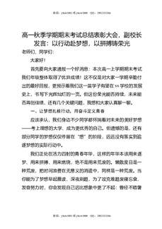 高一秋季学期期末考试总结表彰大会,副校长发言:以行动赴梦想,以拼搏铸荣光.doc