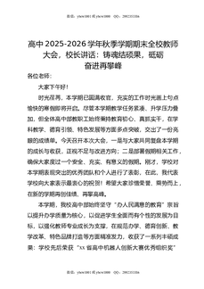 高中2025-2026学年秋季学期期末全校教师大会,校长讲话:铸魂结硕果,砥砺奋进再攀峰.doc