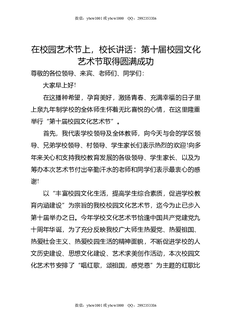 在校园艺术节上,校长讲话:第十届校园文化艺术节取得圆满成功.doc
