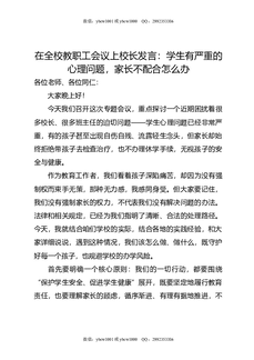在全校教职工会议上校长发言:学生有严重的心理问题,家长不配合怎么办.docx