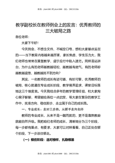教学副校长在教师例会上的发言:优秀教师的三大破局之路.doc