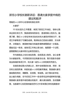 新任小学校长就职讲话:恳请大家多提中肯的建议和批评.doc
