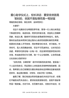 爱心助学仪式上,校长讲话:要坚信贫困是暂时的,贫困不是耻辱而是一笔财富.doc