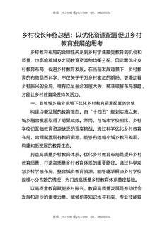 乡村校长年终总结:以优化资源配置促进乡村教育发展的思考.doc