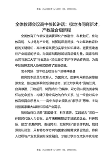 全体教师会议高中校长讲话:校地协同育新才,产教融合启新程.doc