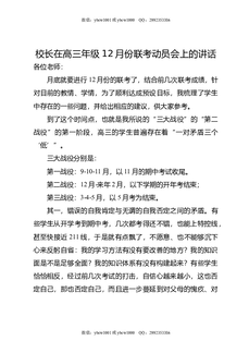 校长在高三年级12月份联考动员会上的讲话.doc