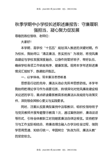 秋季学期中小学校长述职述廉报告:守廉履职强担当,凝心聚力促发展.doc
