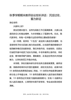 秋季学期期末教师会议校长讲话:沉淀过往,蓄力新征.doc