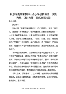 秋季学期期末教师大会小学校长讲话:以爱为基,以进为要,共筑幸福校园.doc