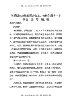 学期期末总结教师大会上,校长引用4个字讲话:追,守,融,暖.docx