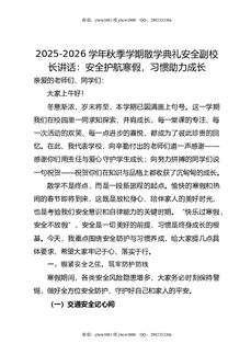 2025-2026学年秋季学期散学典礼安全副校长讲话:安全护航寒假,习惯助力成长.doc