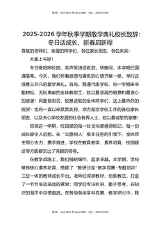 2025-2026学年秋季学期散学典礼校长致辞:冬日话成长,新春启新程.doc