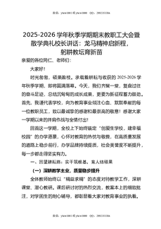 2025-2026学年秋季学期期末教职工大会暨散学典礼校长讲话:龙马精神启新程,躬耕教坛育新苗.doc