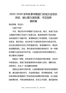 2025-2026学年秋季学期部门总结大会校长讲话:凝心聚力谋发展,守正创新谱新篇.doc