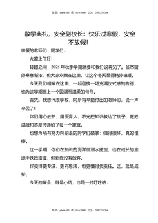 散学典礼,安全副校长:快乐过寒假,安全不放假!.doc