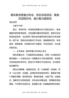 期末教学质量分析会,校长总结讲话:复盘沉淀明方向,凝心聚力提质效.doc