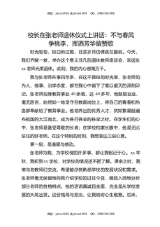 校长在张老师退休仪式上讲话:不与春风争桃李,挥洒芳华留赞歌.docx
