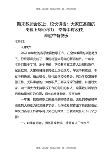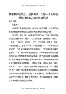期末教师会议上,校长讲话:让每一个为学校默默付出的人都应该被铭记.doc