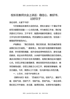 校长在教师大会上讲话:稳住心,教好书,过好日子.doc
