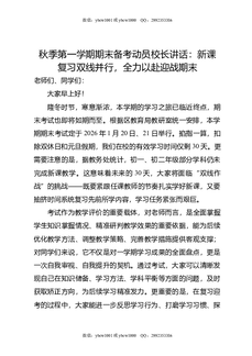 秋季第一学期期末备考动员校长讲话:新课复习双线并行,全力以赴迎战期末.doc