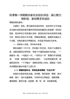 秋季第一学期期末家长会校长讲话:凝心聚力育新苗,家校携手共成长.doc